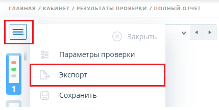 Также можно перейти к выгрузке отчета через страницу просмотра отчета по нажатию кнопки "Действие" - "Экспорт"