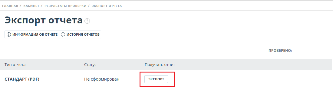 Чтобы начать формирование отчета, кликните на кнопку "Экспорт" на странице экспорта отчета.